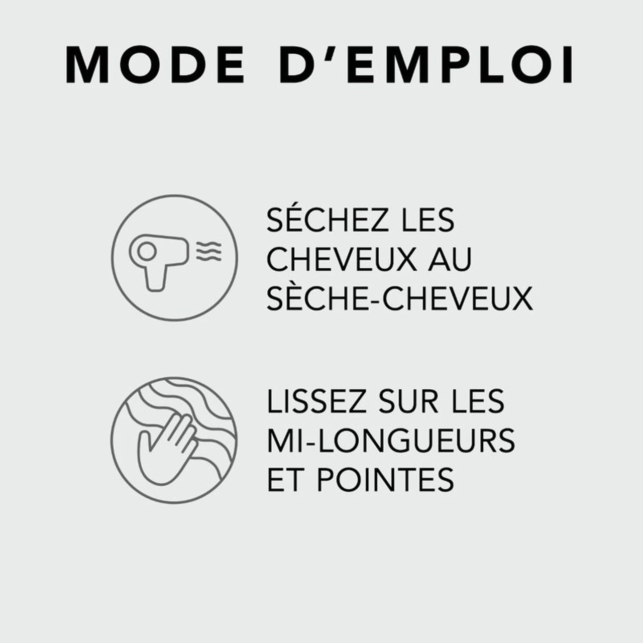 Lissez sur les mi-longueurs et pointes après le séchage au sèche-cheveux et à tout moment de la journée pour sublimer votre look.