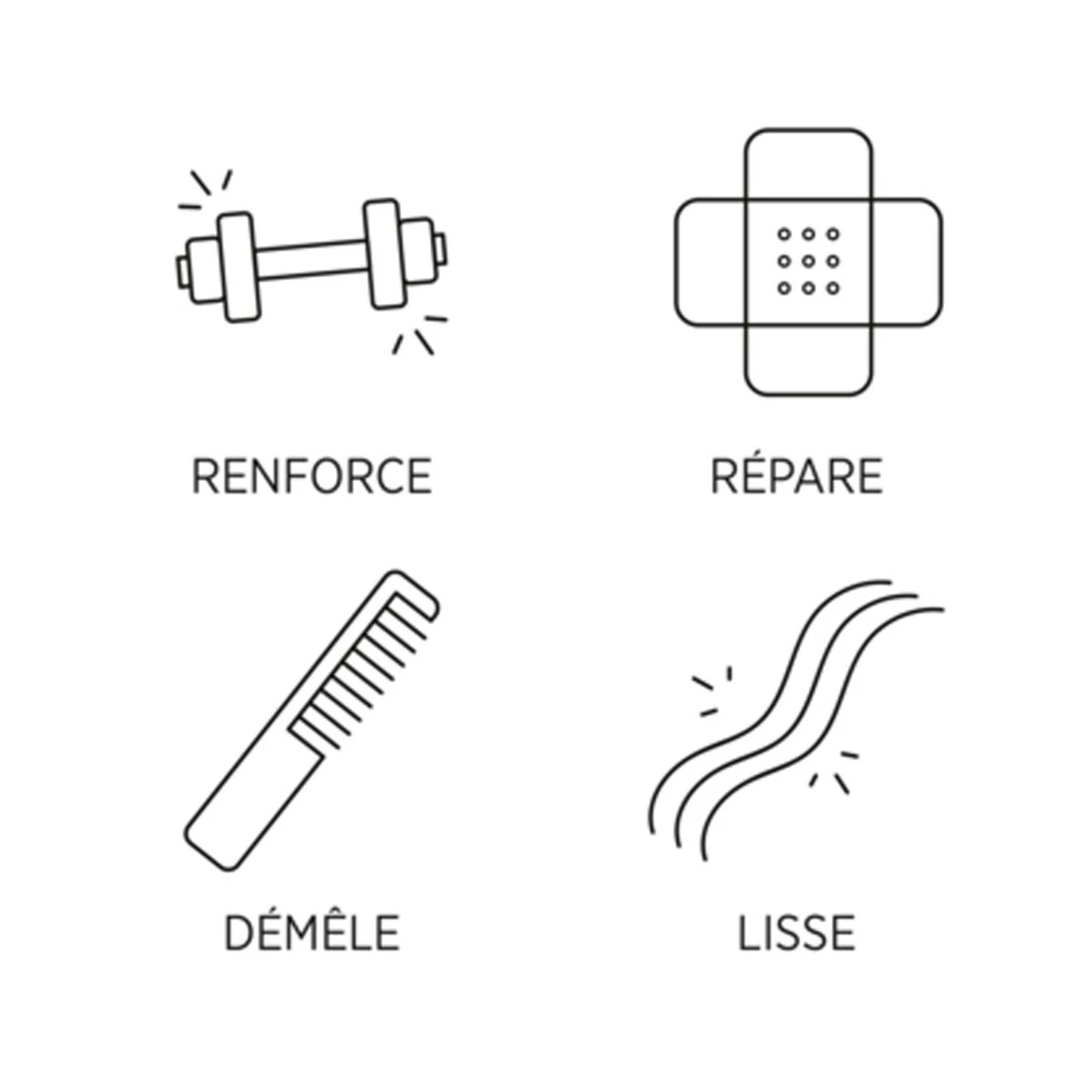 Conçu pour reconstruire en profondeur et créer de nouvelles liaisons au sein du cheveu.