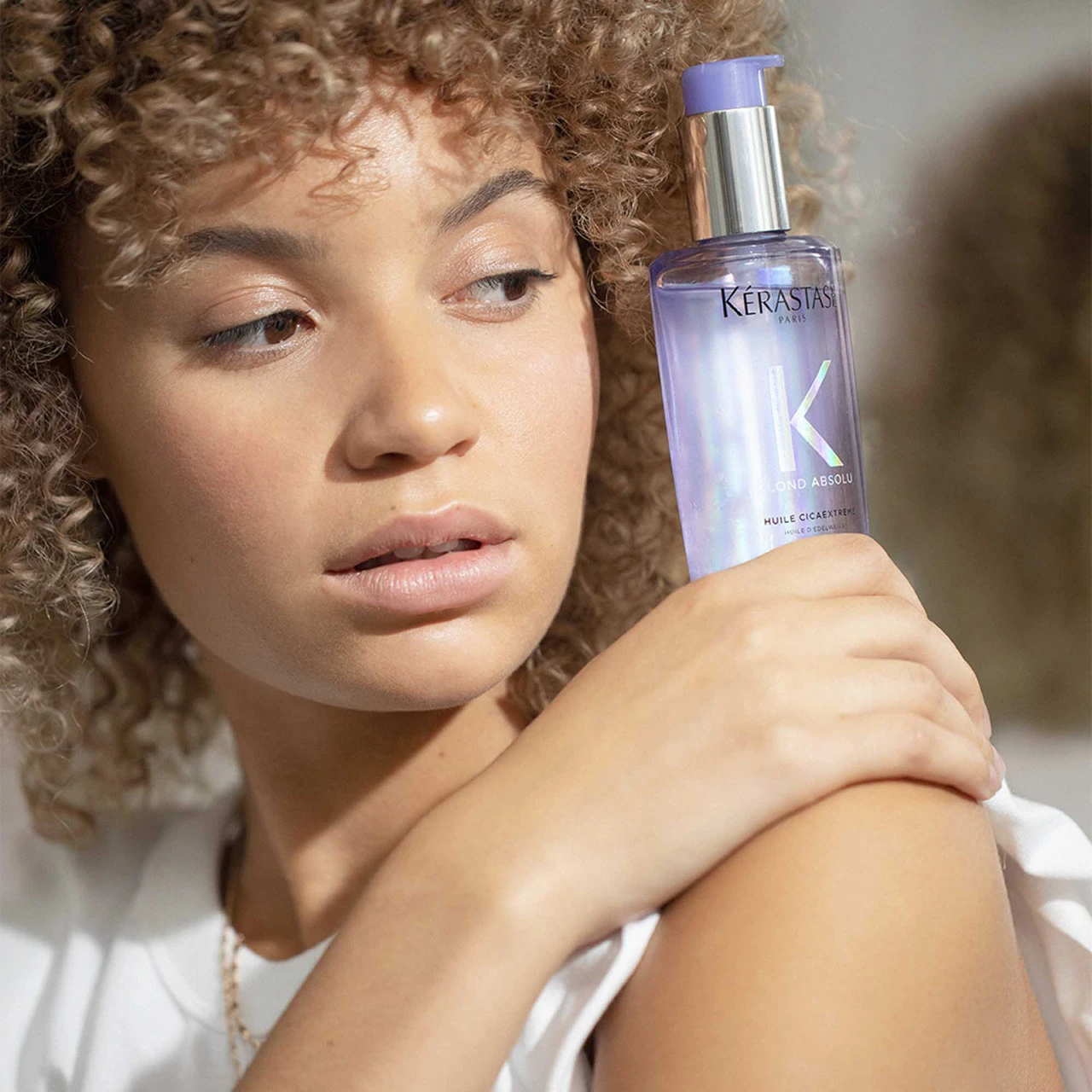 Découvrez l’huile fortifiante blond intense de la gamme Blond Absolu qui renforce les cheveux sensibilisés post-décoloration. Elle augmente leur résistance aux agressions extérieures et leur brillance.