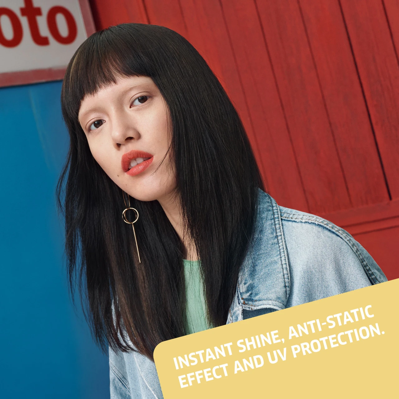 – Si vous le souhaitez, ajoutez du produit sur cheveux secs pour davantage de brillance.