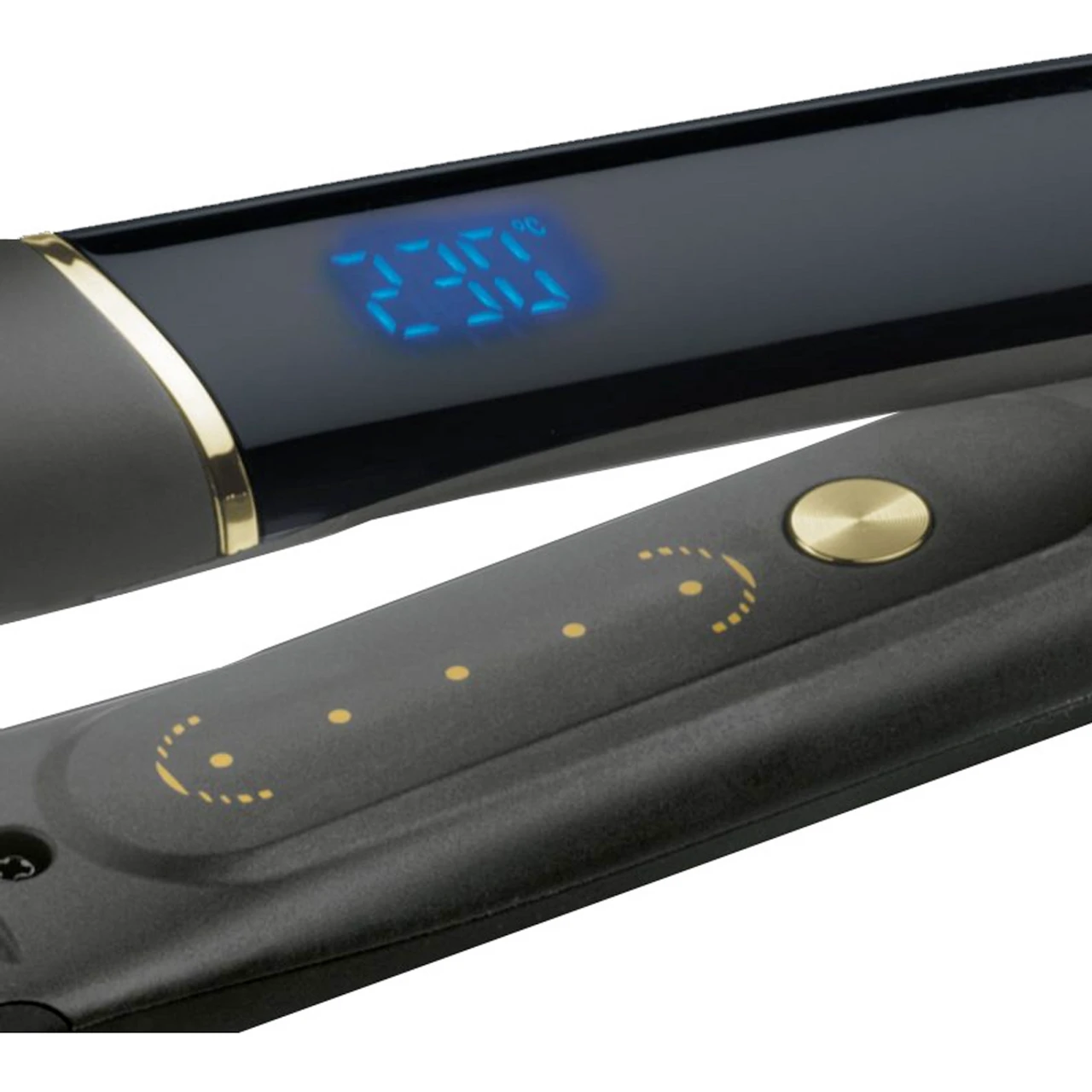Boîtier arrondi avec céramique flottante en poussière d’or + plaques infusées de MAK. Panneau de commande tactile. Technologie Series 7 Heat Boost : système de chaleur numérique LED Ultra even variable ; 90°c à 230°c.